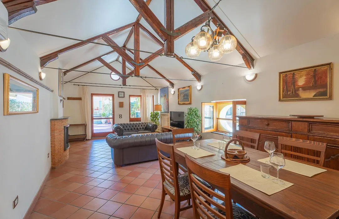 Apartmán Maison Desiderio o velikosti 100 m² má tenisový kurt a rovnou střechu k opalování. Apartmán se nachází 750 metrů od Hradby Parsano a jen 1 km od centra města Sorrento.